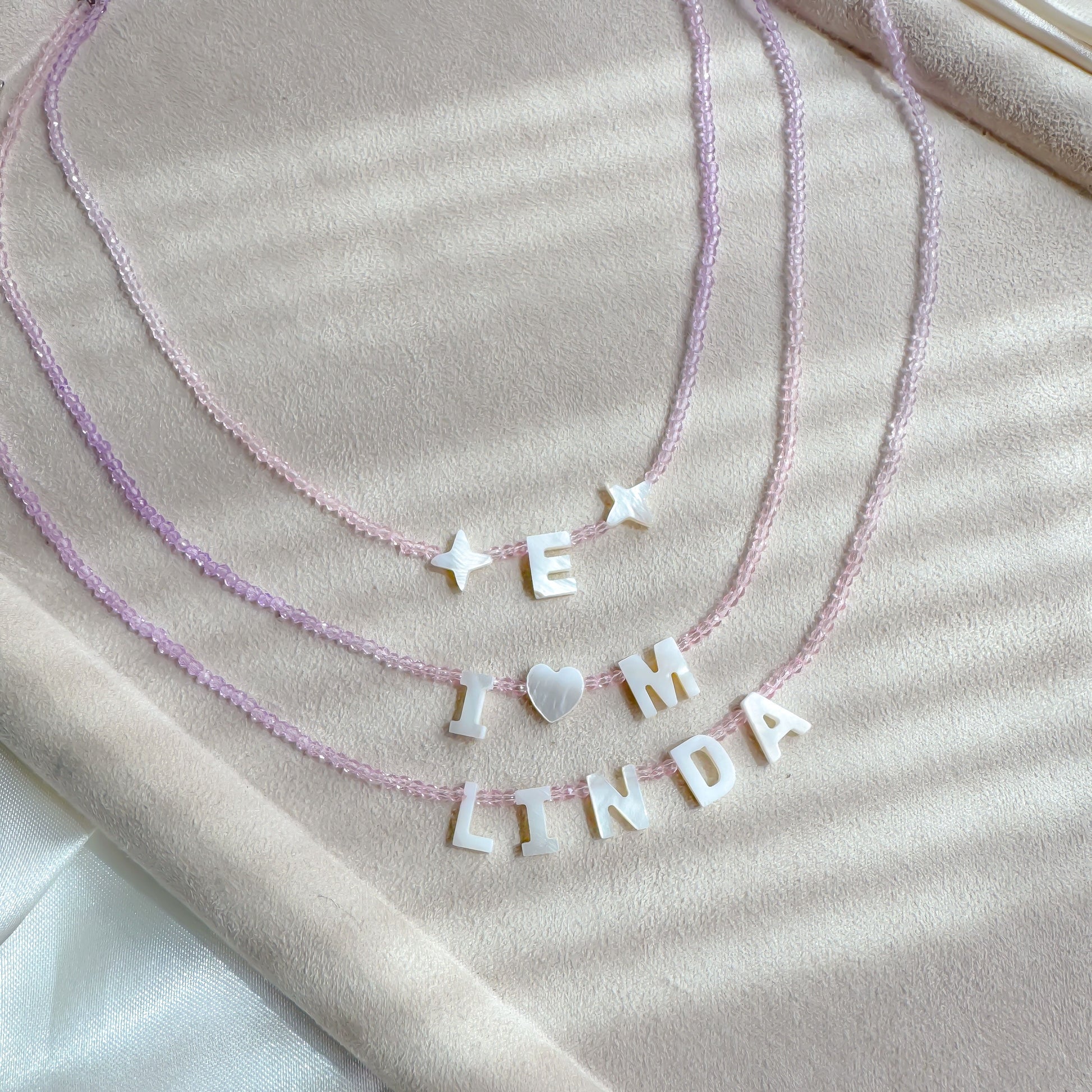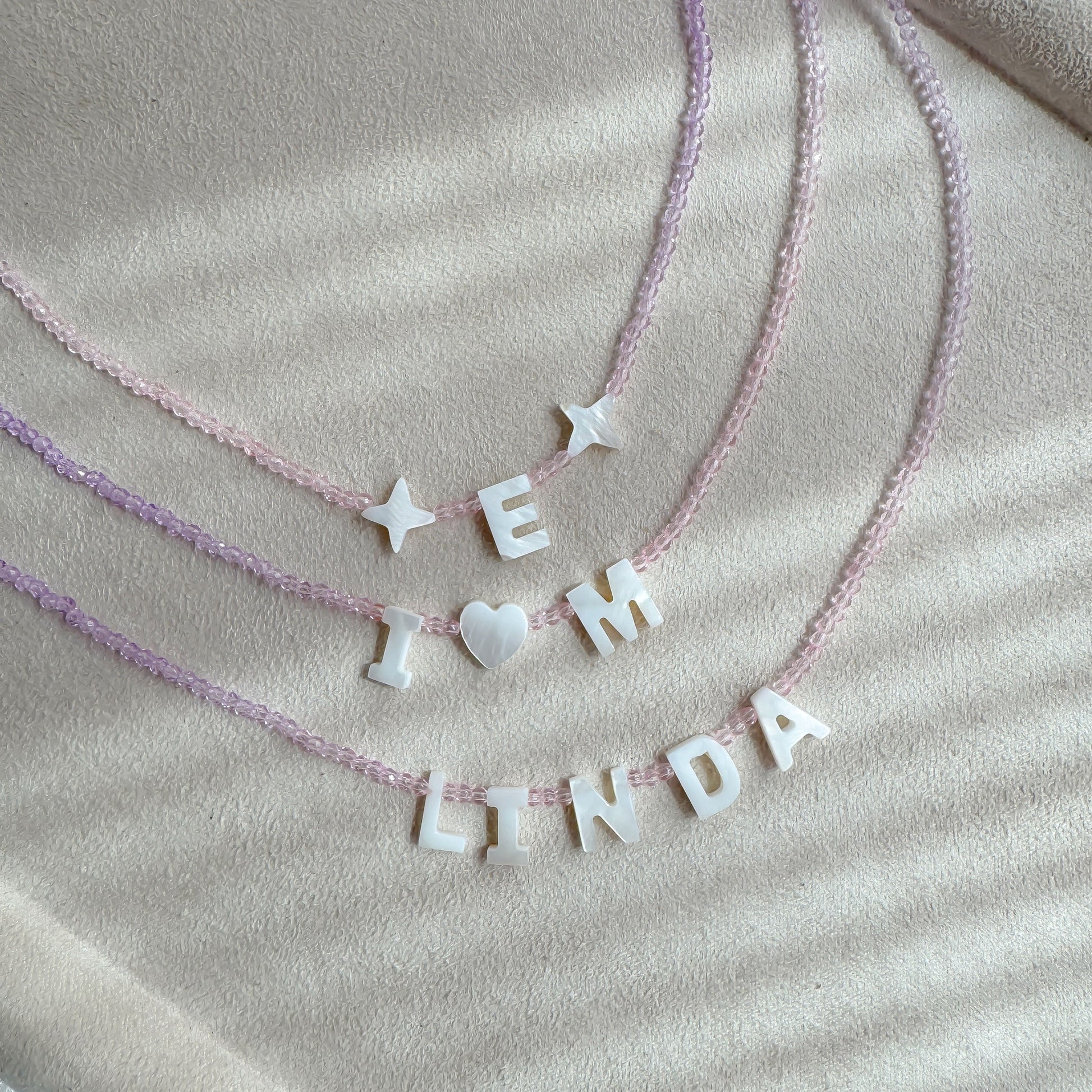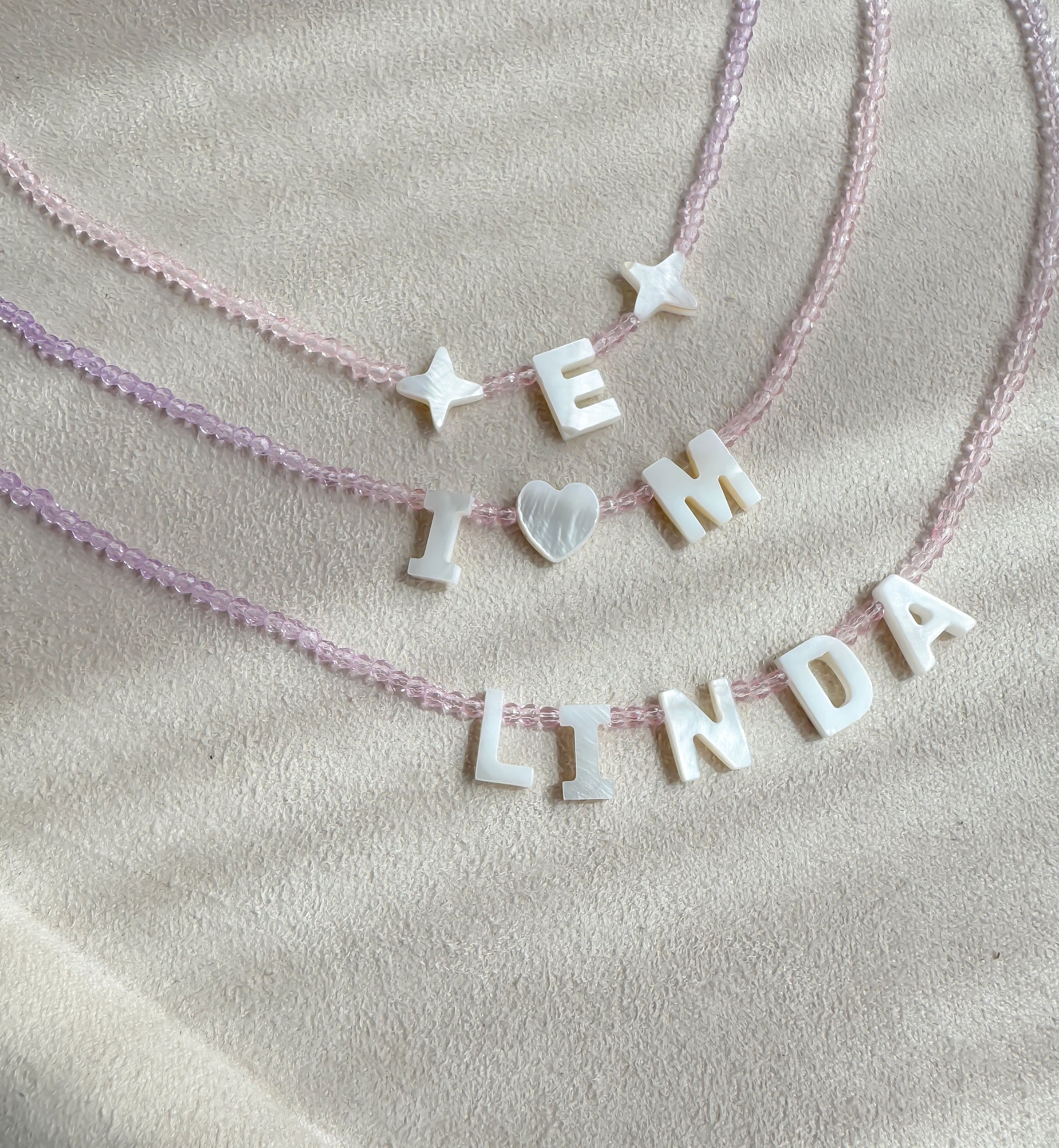 ⢠Made with real mother-of-pearl letter beads